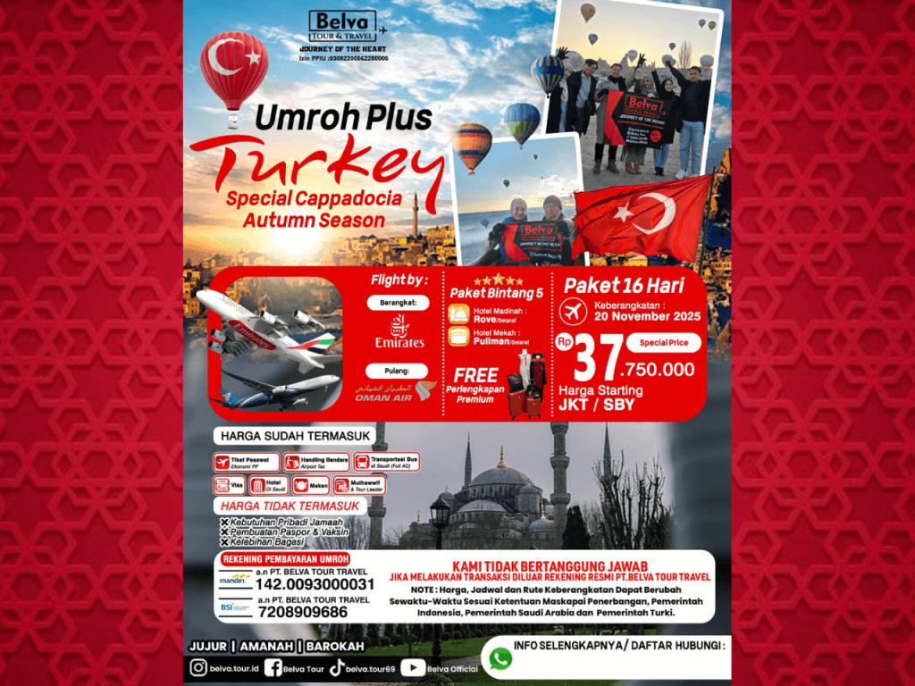 Mohon diperhatikan, semua pembayaran hanya dilakukan melalui rekening resmi atas nama PT. Belva Tour & Travel.